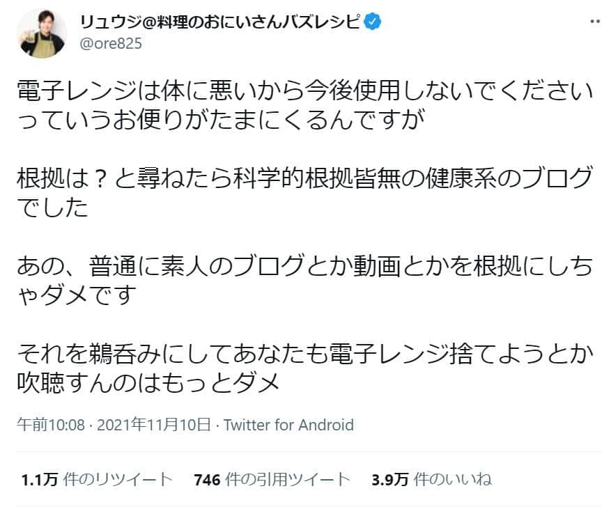 電子レンジは体に悪いから今後使用しないで」 科学的根拠のない苦情に料理研究家が苦言 - スポーツ報知。