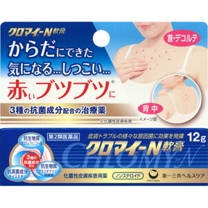 クロマイ-N軟膏 背中・首・デコルテの赤いブツブツの原因菌に効果を発揮第一三共ヘルスケア。