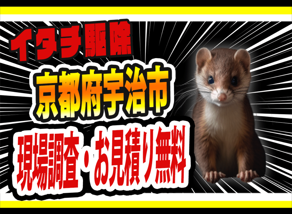 京都府宇治市イタチ駆除害獣・害虫駆除専門!再発保証と地域最安値で選ぶならホームレスキュー株式会社。