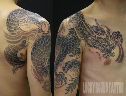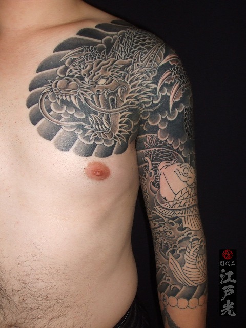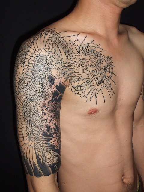 胸から腕への龍の刺青男性- 大阪 LRTの刺青blog和彫りのデザインや画像など。