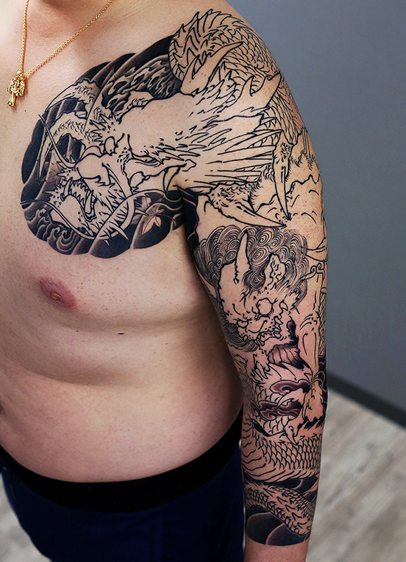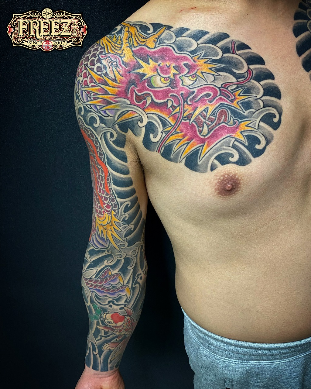 龍の刺青irezumi関東彫り胸ひかえ腕九分 千葉幕張タトゥーtattoo千葉タトゥーは千葉市花見川区幕張本郷のFREE:ZTATTOOフリーズタトゥ。
