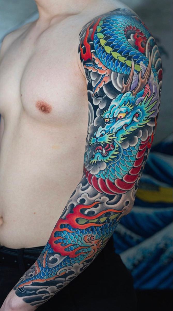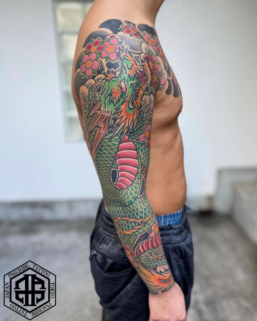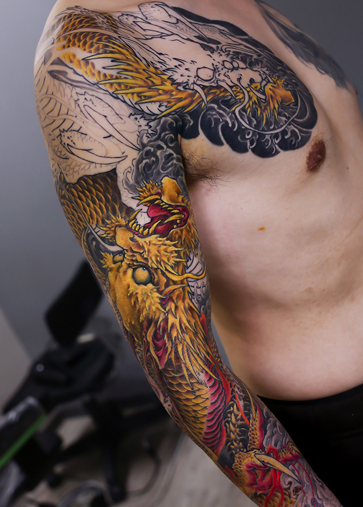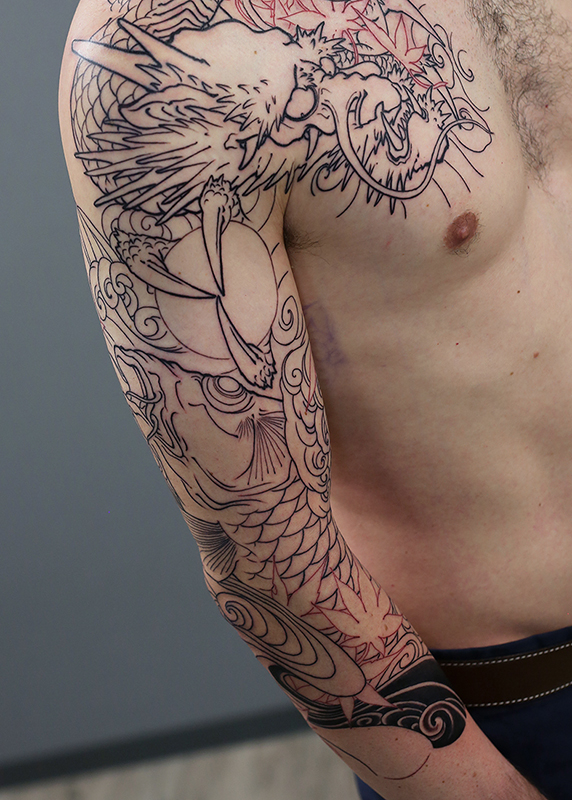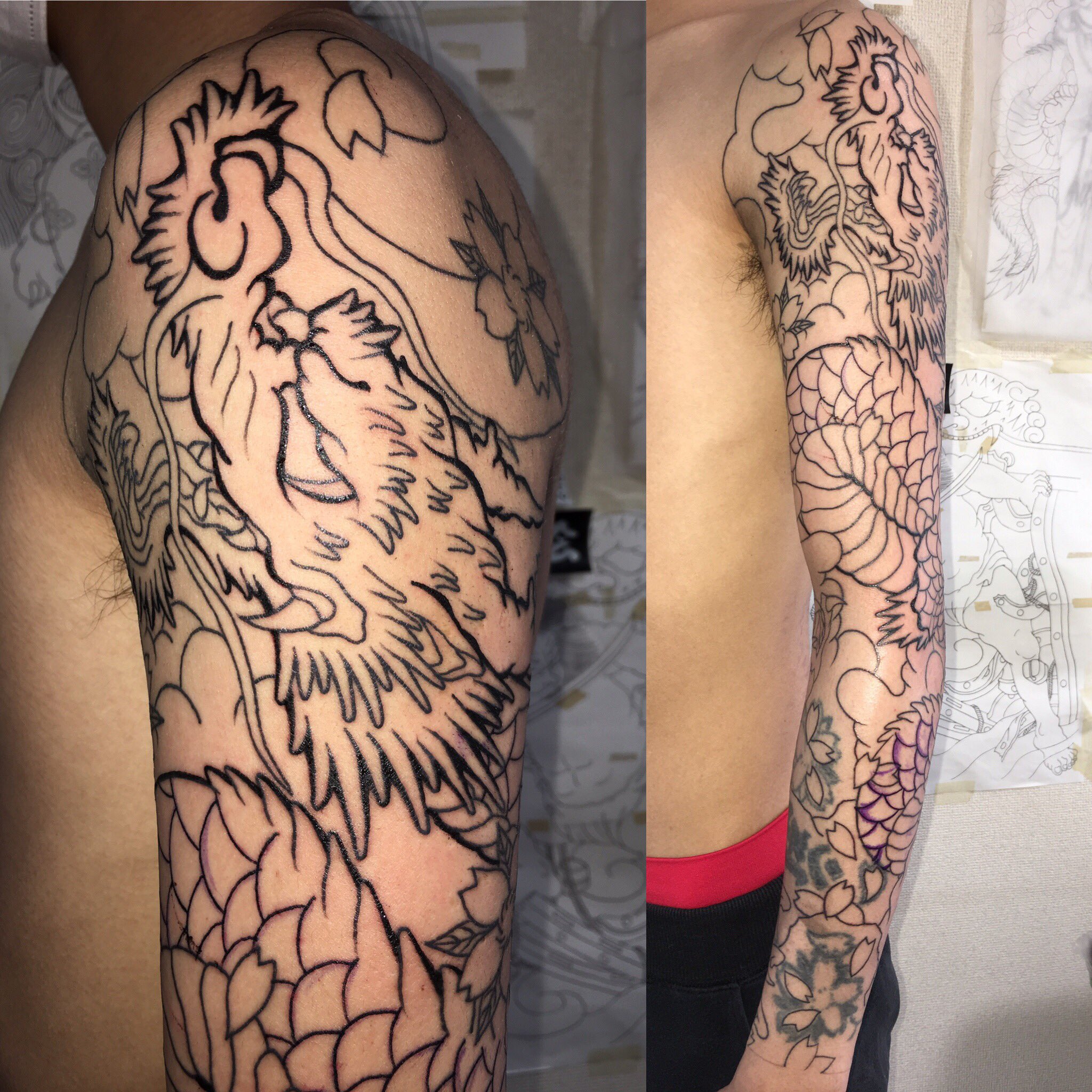 黄龍 カバー 腕十分袖 製作中 - YK TATTOO BLOGさいたま市のタトゥー ショップ。