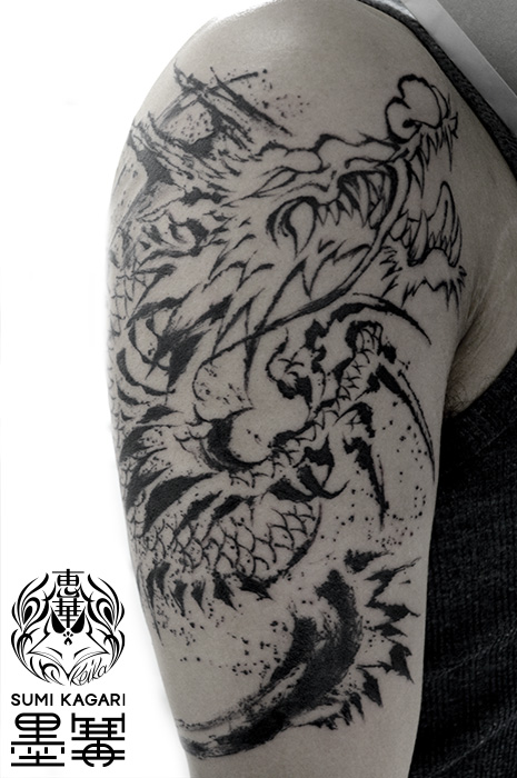 和彫り 〜五分袖 龍 タトゥーデザイン〜Ryuji tattoo studio。