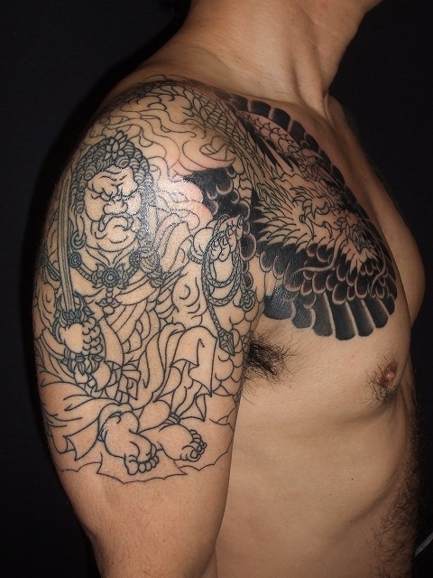 不動明王と龍の刺青タトゥー腕の刺青東京 刺青 タトゥー 和彫り 洋彫り 刺青師二代目江戸光。