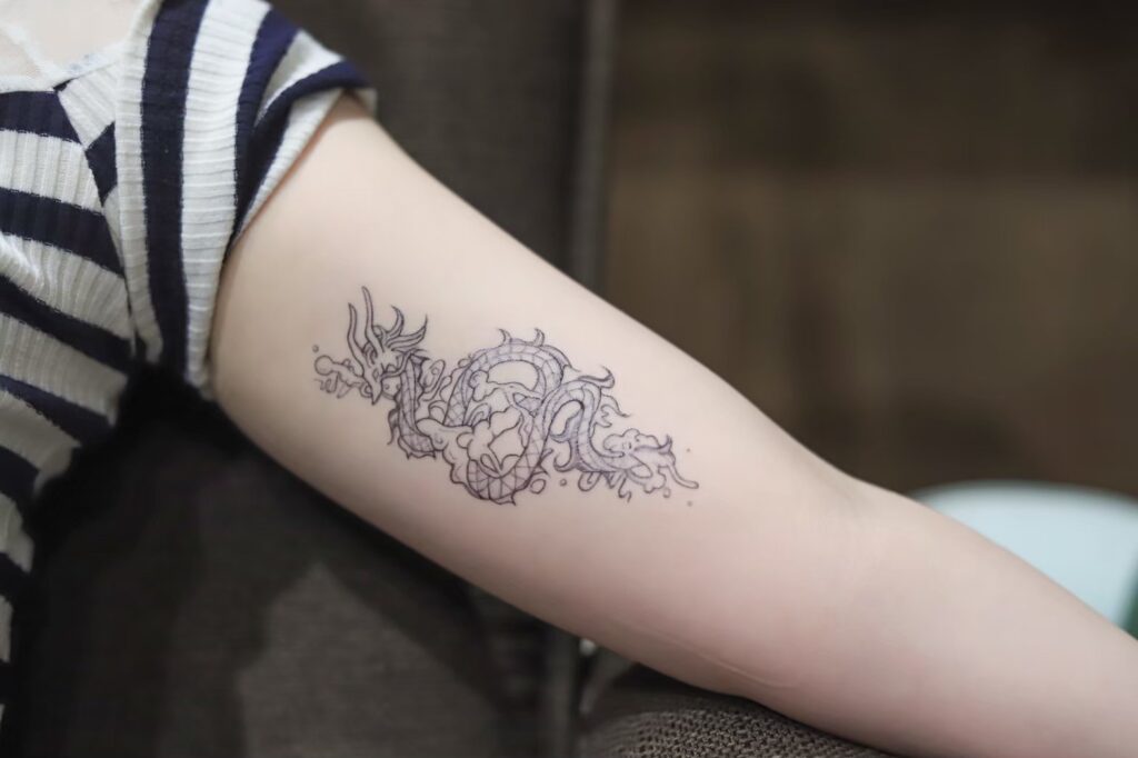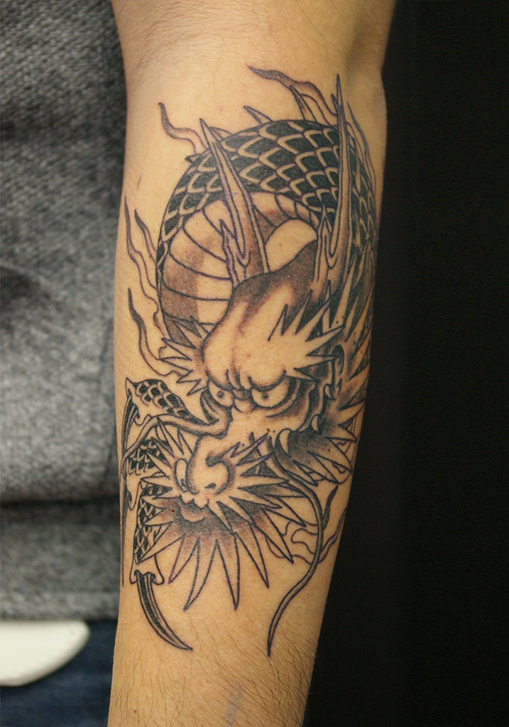 腕に龍の額彫りひかえカイナ八分の刺青タトゥー腕の刺青東京 刺青 タトゥー 和彫り 洋彫り 刺青師二代目江戸光。