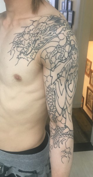 刺青 騎龍観音 腕 スタート刺青 東京 福生、八王子、立川、吉祥寺、新宿 なら刺青師龍一郎。