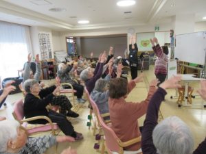 令和7年2月 高齢者 体操 座ったまま うた体操 リズム体操 デイサービス 老人ホーム 午前 午後のレク イス体操 楽しく運動 楽しい 童謡 唱歌簡単 健康 冬 シニア フレイルや認知症予防に。