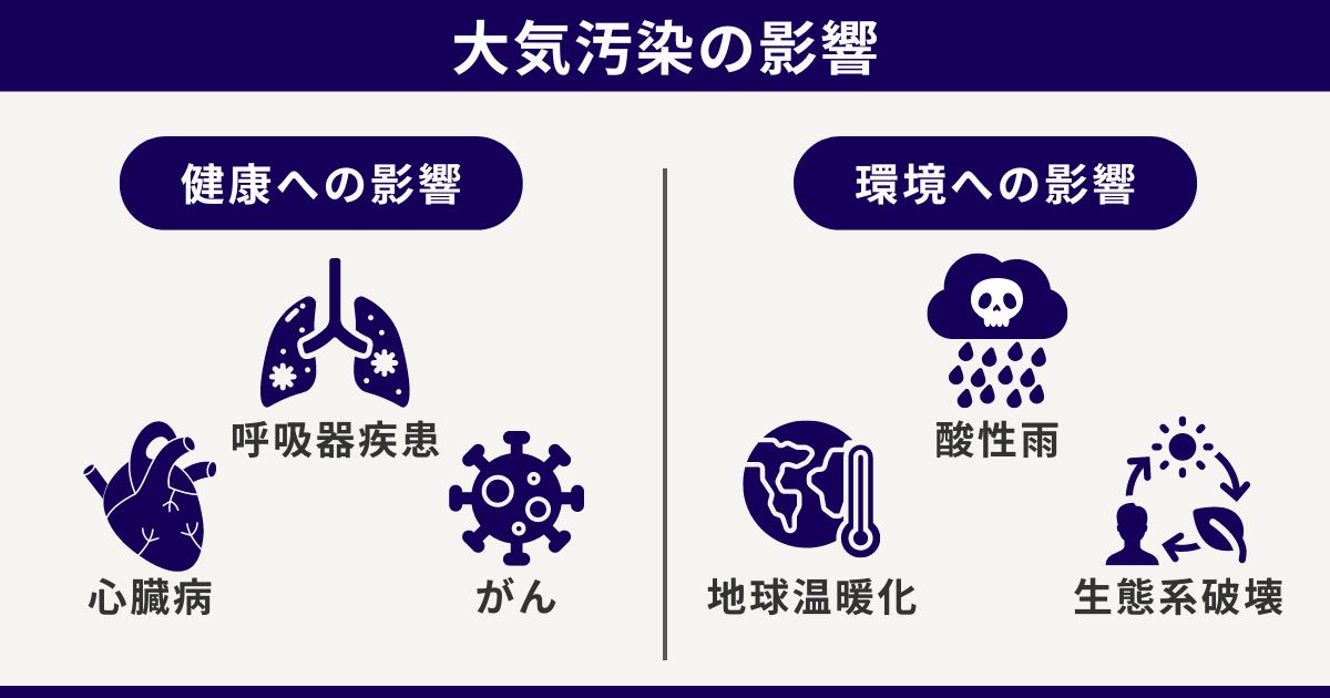 大気汚染の原因とは?汚染物質の種類や健康への影響、企業・個人ができる対策。