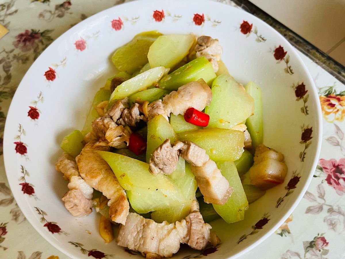 清炒佛手瓜,15分钟,清爽微甜,一定要削皮,否则口感很粗糙。