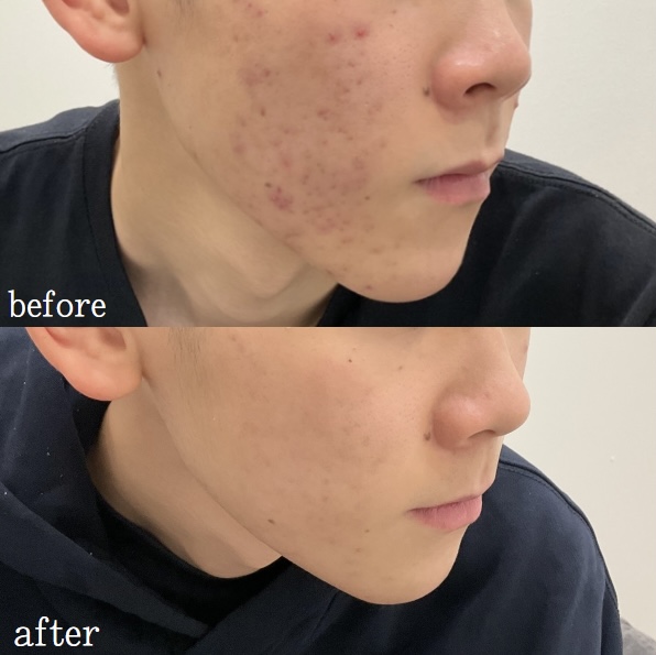 ニキビ跡 に ダーマペン の施術を お受けいただいた患者様のビフォーアフターです! 症例写真の掲載の許可を頂きましてありがとうございます✨ 当院では、ニキビの状態に合わせて、適切な治療をご提案させていただいております。 赤い炎症性の ニキビ が。