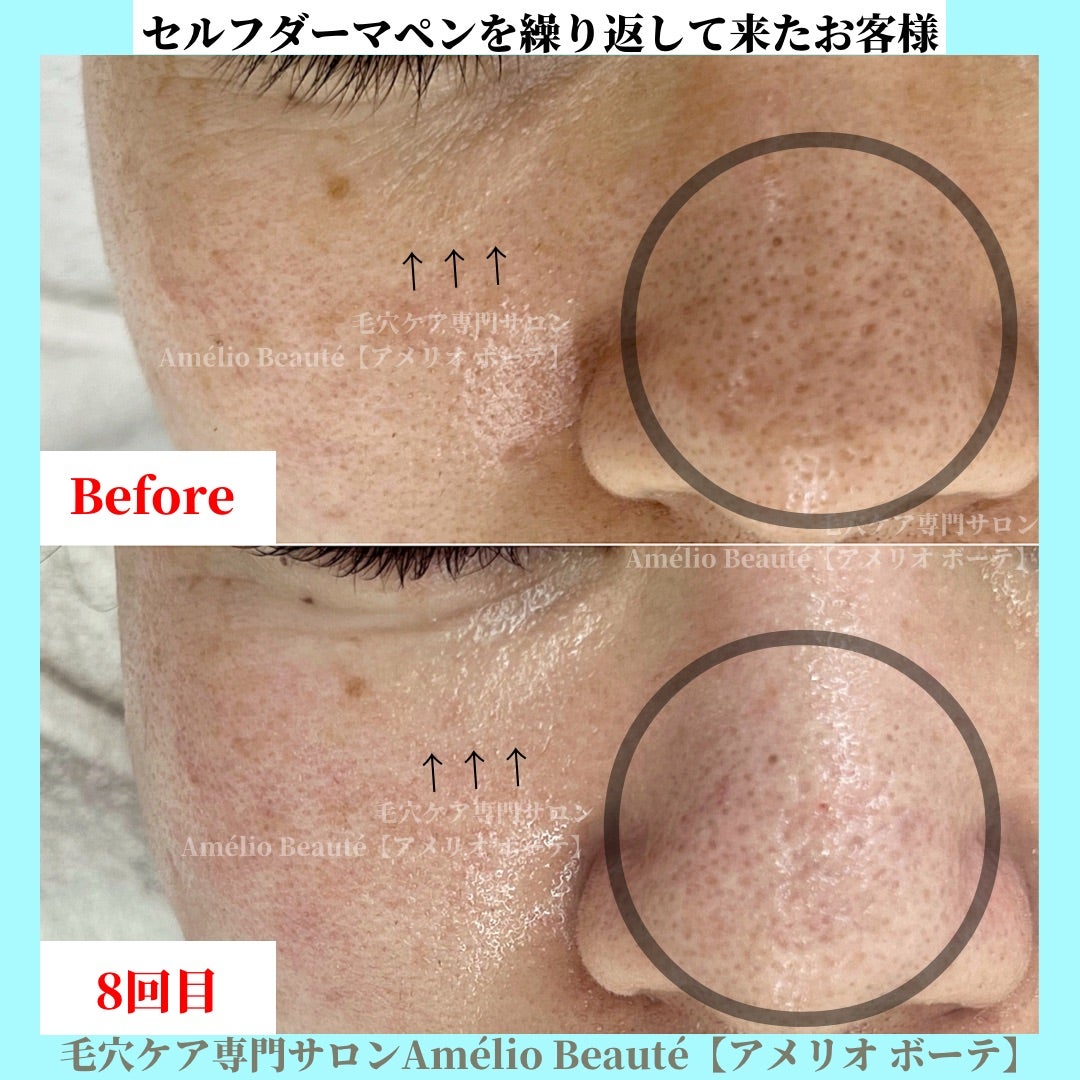 症例 凸凹毛穴・開き毛穴に悩み、セルフダーマペンを繰り返して来たお客様 どのくらい変わる?群馬県太田市 東京都渋谷区表参道 凸凹毛穴・開き毛穴・すり鉢毛穴 毛穴ケア専門サロン アメリオ ボーテ。