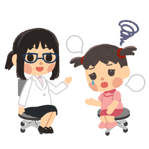 保健師さん または臨床心理士さんなど が親子カウンセリングをしているイラスト🎨 フリー素材 看護roo! カンゴルー。