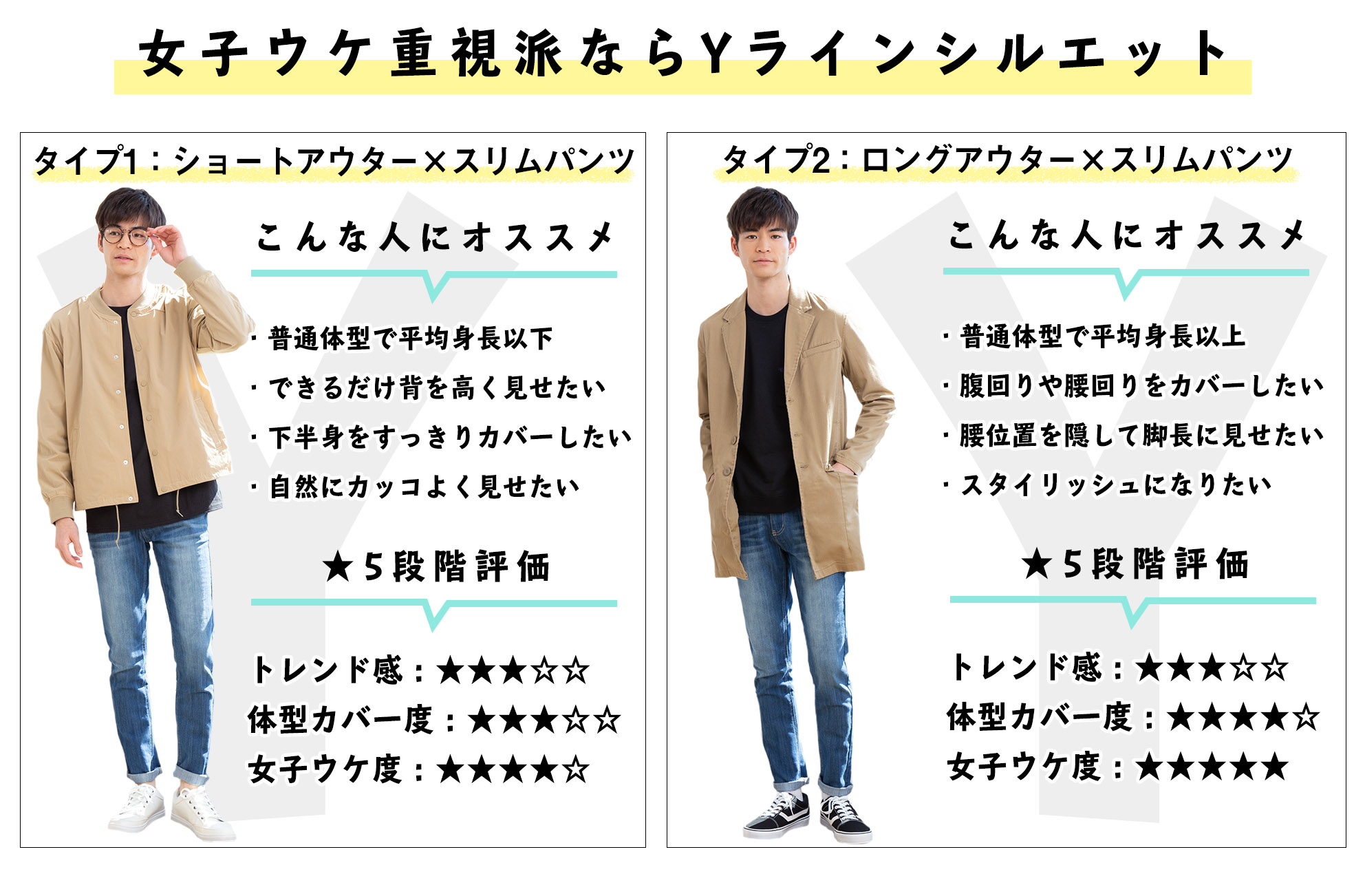 細身体型の男子に朗報!痩せ型にこそ似合うY型シルエットのコーディネート。