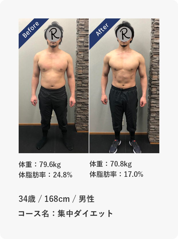 30代男性の集中ダイエット成果 - 京都「パーソナルラボR」。