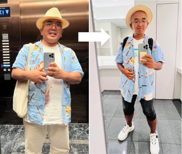 痩せてお顔も身体もシャープになりカッコよくなった男性のビフォーアフター福岡のパーソナルジム・ピラティスブログ「ダイエットは明日から」。