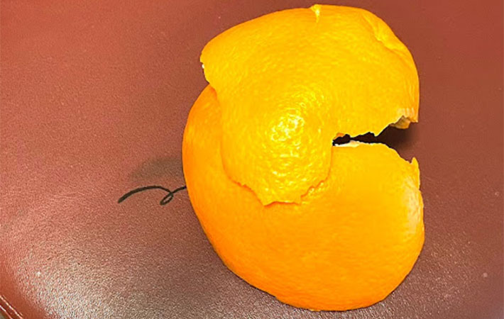 頑固な油ジミが真っ白キレイに!みかんの皮でシミ抜き。