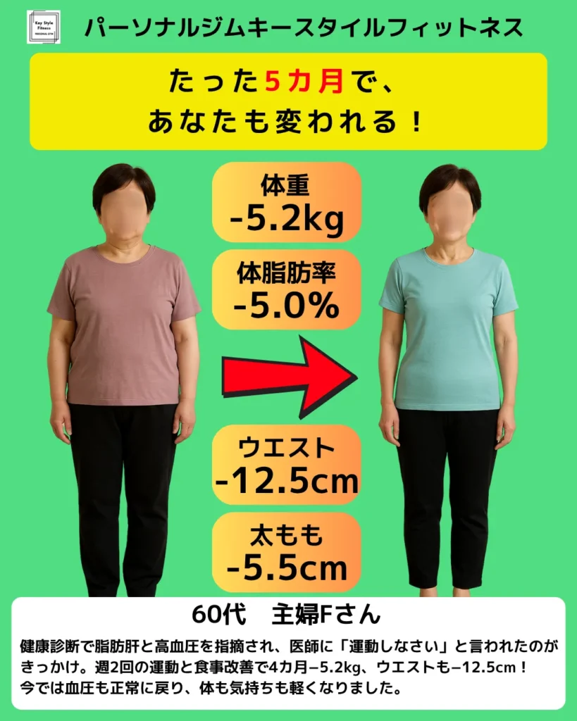 ダイエット ビフォーアフター 50代女性ブログ葛飾区のジムなら整体×トレーニング トータルボディケア OF LIFE。