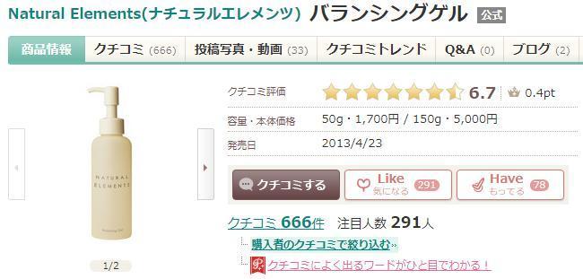 ナチュラルエレメンツ バランシングゲル口コミ体験レビュ。