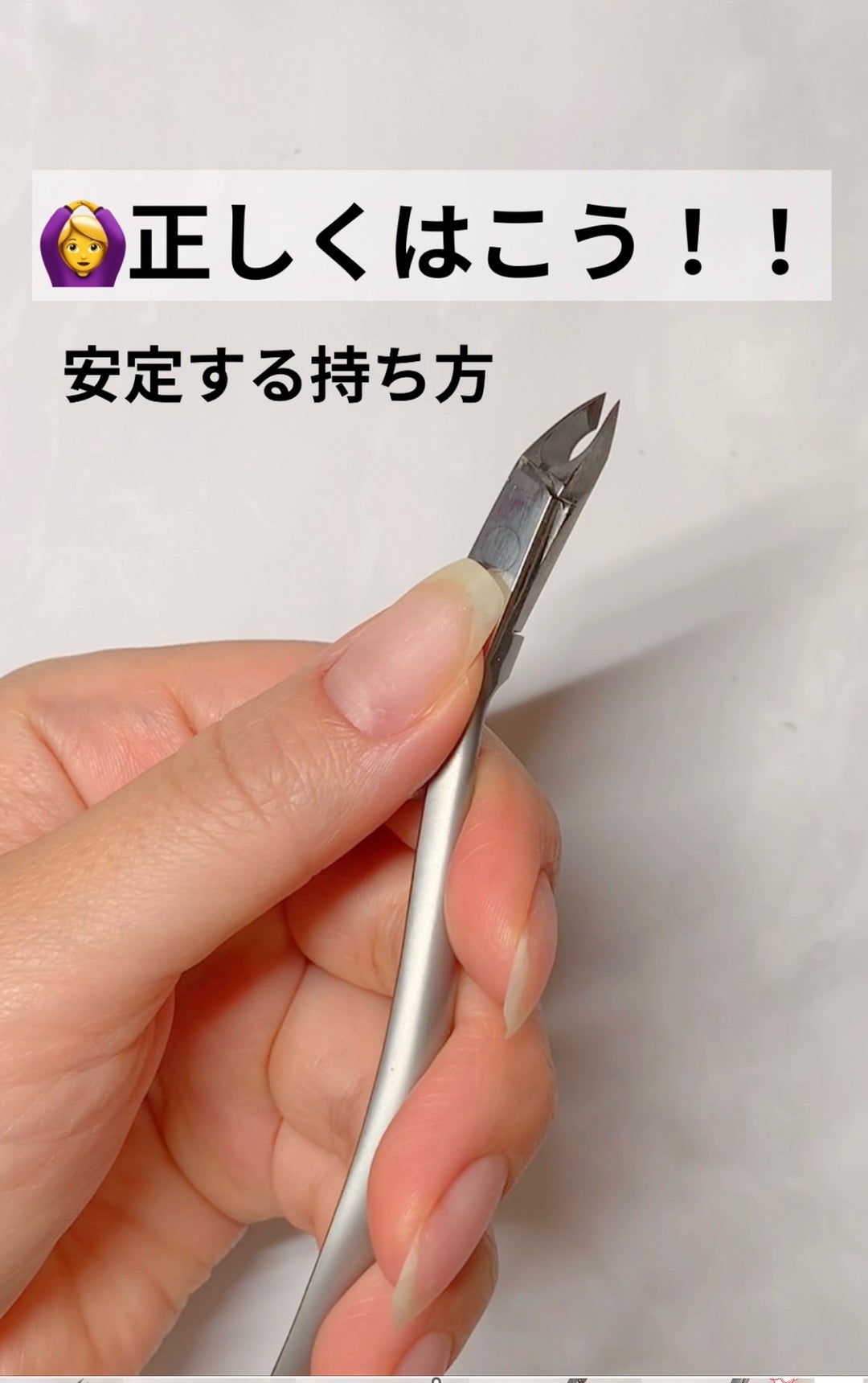 小笠原友紀子🌸ネイルサロンFelicia仙川 ネイルケア on Instagram: "✴︎ 〜甘皮ケア〜 ニッパーの使い方💓 ・ ・ 両サイドは刃先を爪と皮膚のキワをめがけて 当てると取りやすくなります💅 ・ ・ 皮膚のパサつきが気になる方は 濡らしたガーゼでしっかりと甘皮周りを。