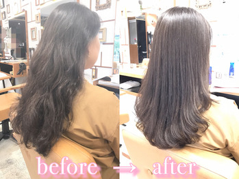 縮毛矯正毛にデジパをして失敗したチリチリ毛を髪質改善ストレートでサラサラに。 – Masumi Kusumoto Official Site。