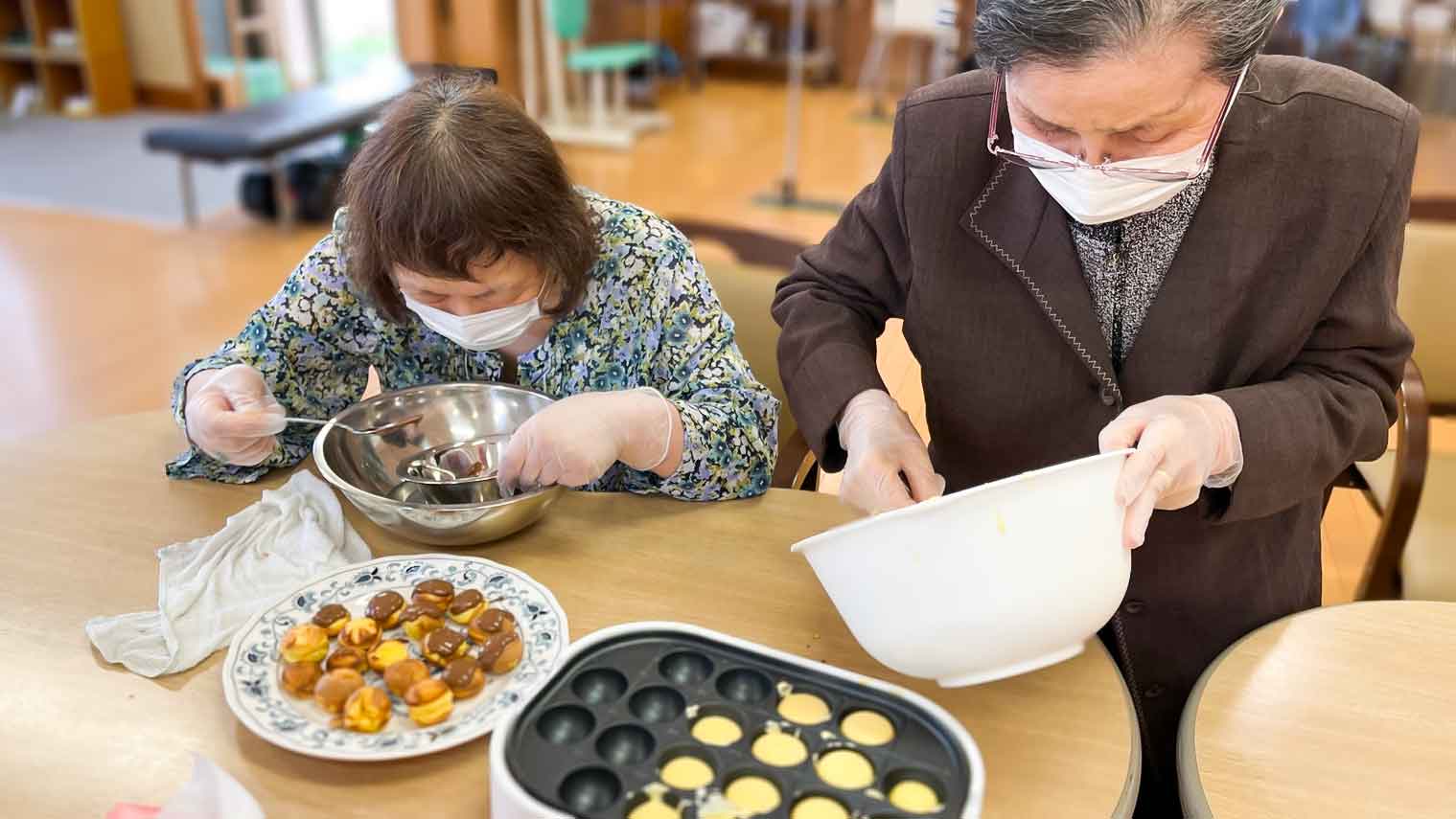 デイサービスのおやつ作りレク櫻ホーム西神・さくらさく。