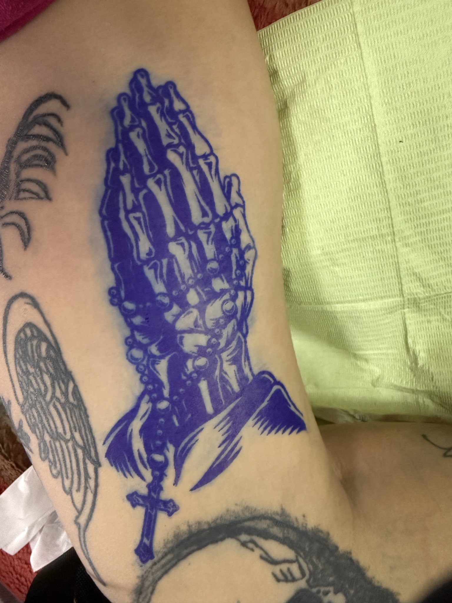 ❤︎P!NK❤︎ on X: " 」°ロ° 」 痛かったァァァ💦 これ、太ももの内側です😑💧 年始?彫る事が決まっていたのでかなり厄介な作品なので 本番で彫りました。 部位的に痛いのは置いといて、 逆さから彫っているので ってな 感じですが正しい向きで彫れれば素敵な作品になり。