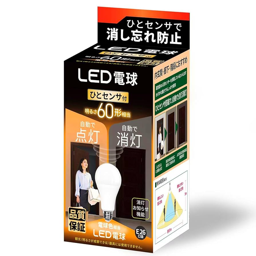 Amazon人感センサー LED 電球 E26口金 60形 100形相当 電球色相当 消灯お知らせ機能搭載、自動点灯、消灯、消し忘れ防止、明暗 センサー付 節電 赤外線センサーライト 廊下灯 玄関灯 洗面所 階段電球色 1個セットMINGBENLED電球 通販。