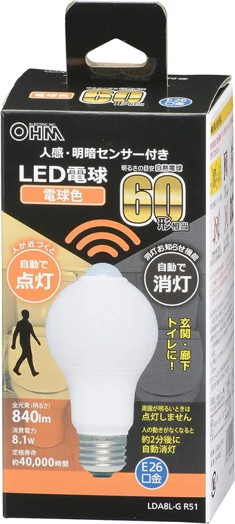Amazon.co.jp: 人感センサー付きled電球 e17 電球色 60形相当 610lm 明暗センサー付 小型電球 自動点灯 消し忘れ防止省エネ 洗面所 階段 玄関 廊下 トイレ 1個入 : ホーム&キッチン。
