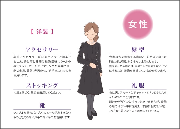 お葬式・告別式にふさわしい服装と身だしなみ 男女 立場別はじめてのお葬式ガイド。