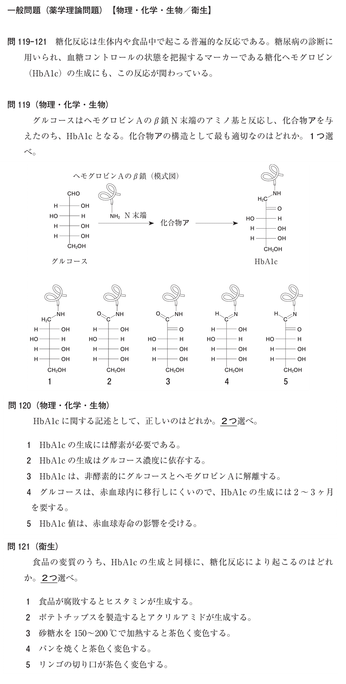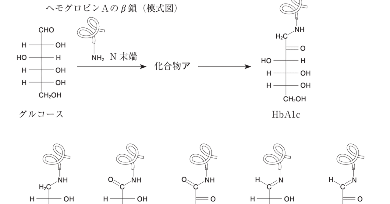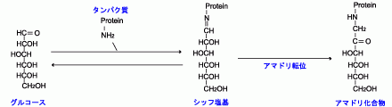 松廼屋論点解説 薬剤師国家試験対策ノート問 108-119-121 物理・化学・生物 衛生1 3論点:グルコースアミノ基シッフ塩基アマドリ転位ケトアミンmatsunoya。