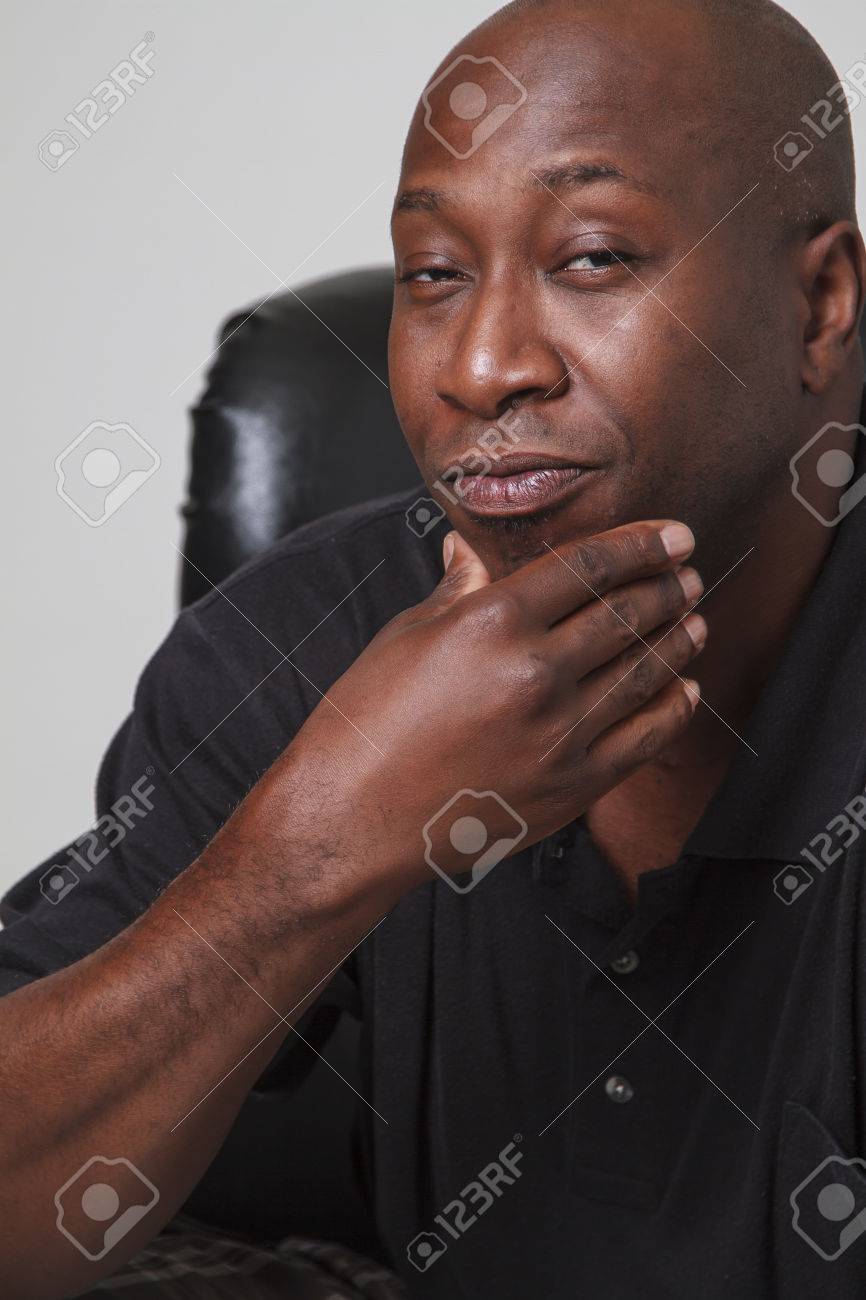 カメラを指して素晴らしい笑顔でハゲの黒人男性の写真素材・画像素材 Image 34098865。