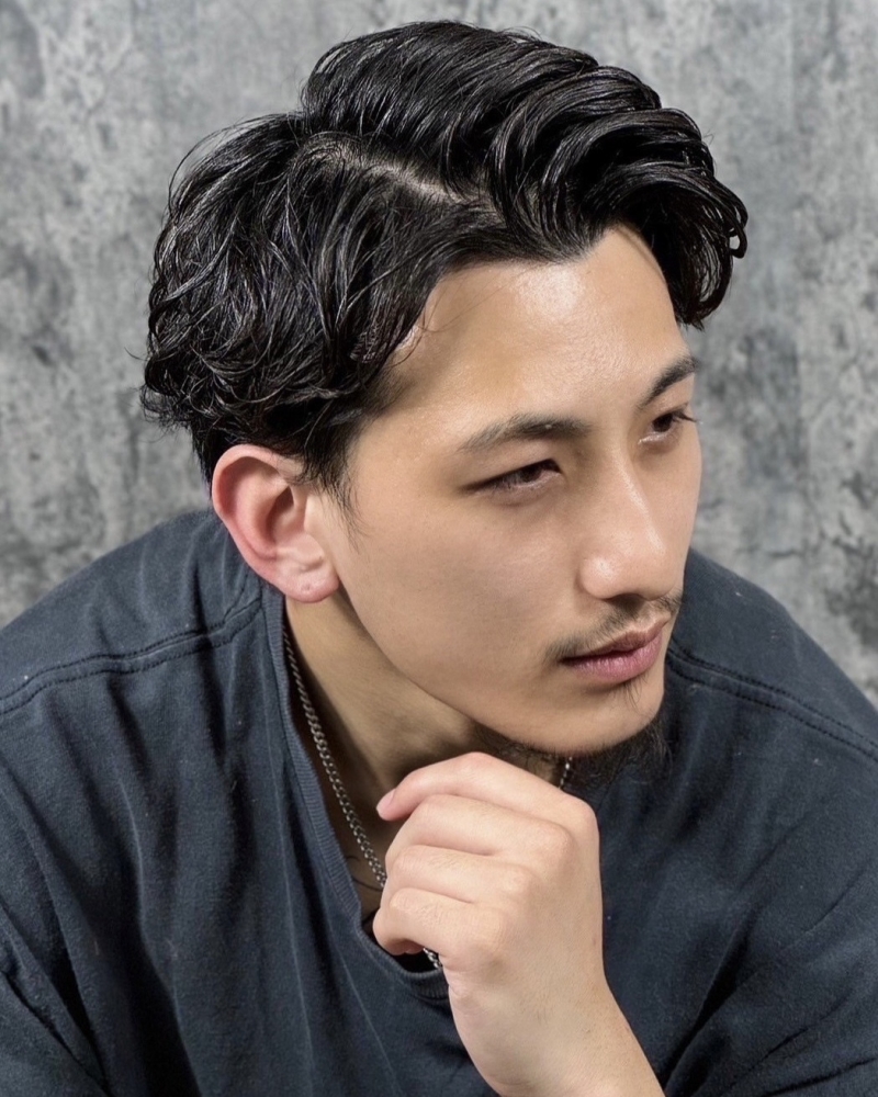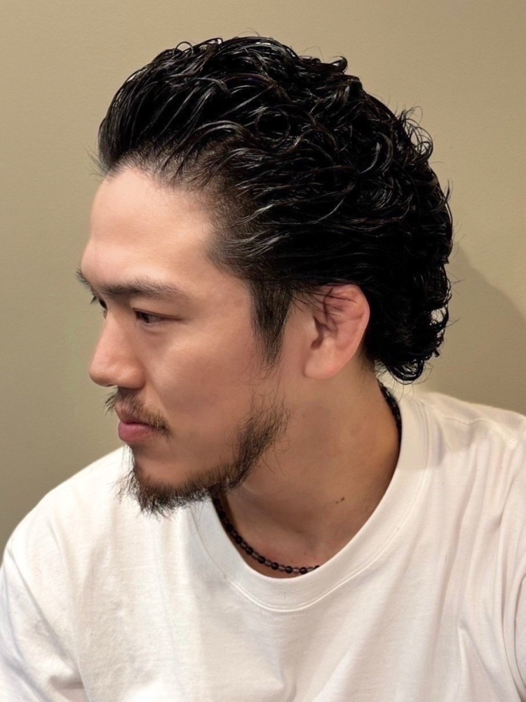 ワイルドオールバックパーマヘアカタログ高級理容室 床屋 ヒロ銀座ヘアーサロン。