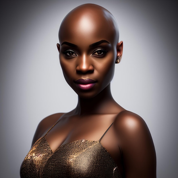 エレガントなハゲ黒人女性Premium AI生成画像。