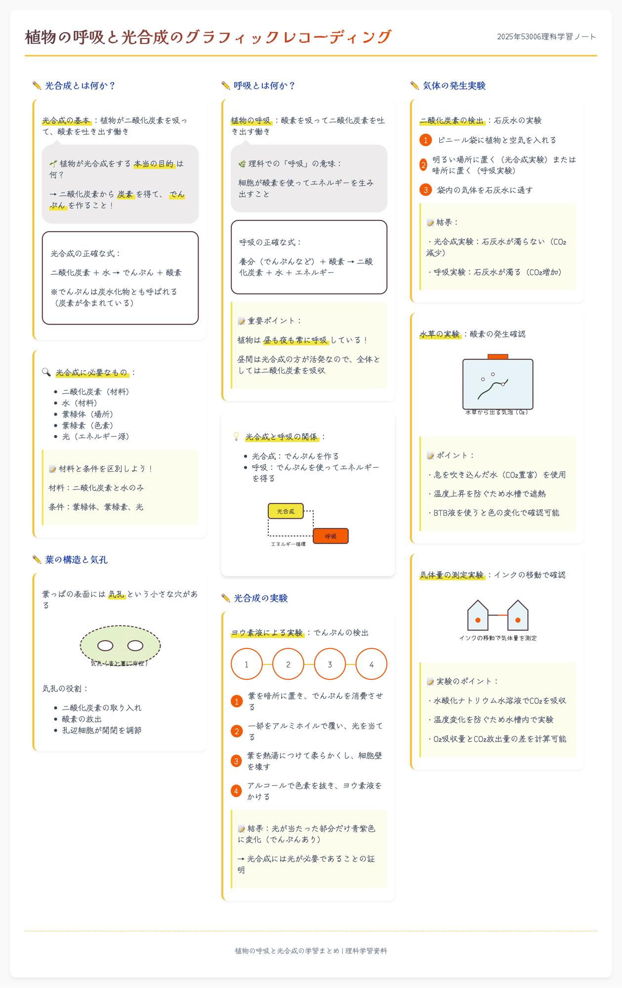 中2生物 光合成と呼吸の実験中学理科 ポイントまとめと整理。