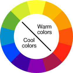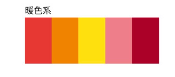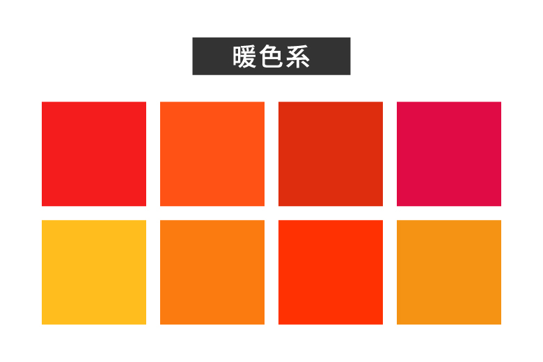 暖色の効果と一覧図色彩学 絵画・イラスト・デザイン技法 カラーコーディネートにおける配色方法赤・オレンジ・黄色の熱い・暑い・温かい色warm color。