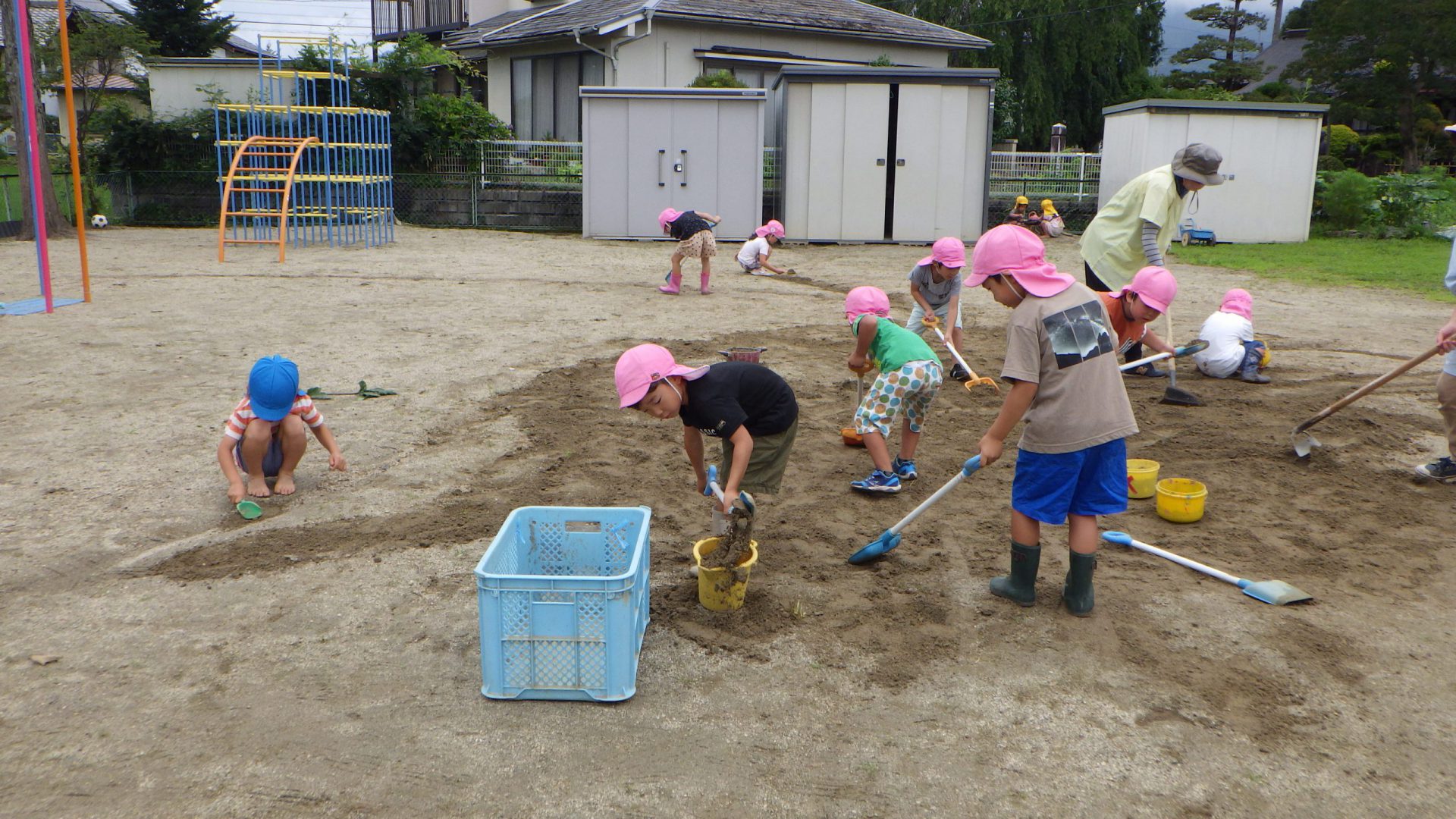 夏祭りが出来ない!!園庭工事をしよう! - 信州やまほいくの郷。