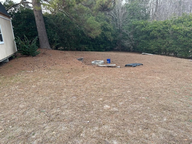 庭を綺麗にする為のDIY。コンクリートレンガを敷く。土を盛って平らにする。除草剤を撒く。 - 田舎を楽しむ。