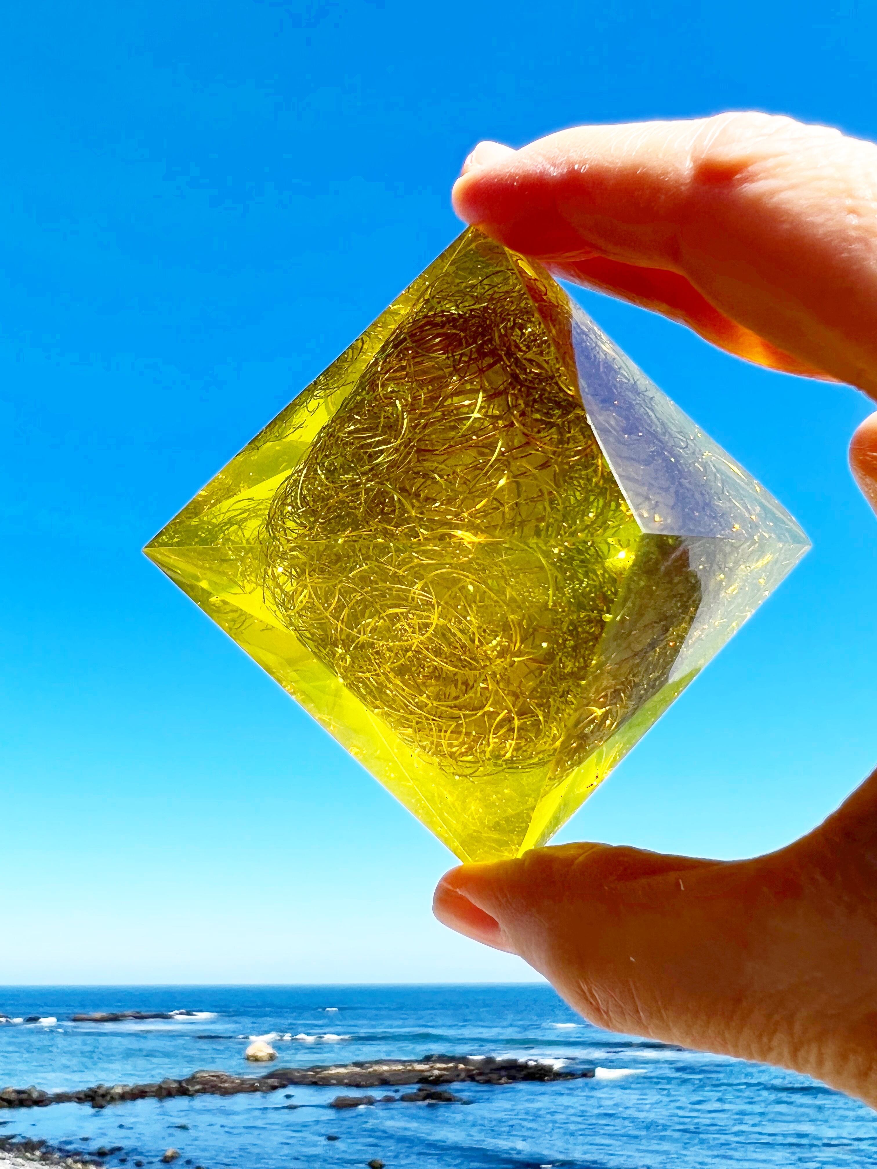 オルゴナイト オクタヒドロン 正八面体 M・イエロー・台座なし。
