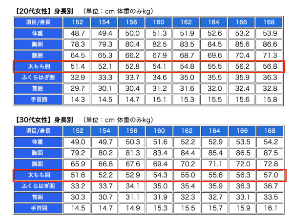 女性の太ももの太さの平均値」!身長、体重別まとめ!ZOZOスーツのデータを分析!nujonoa_blog。