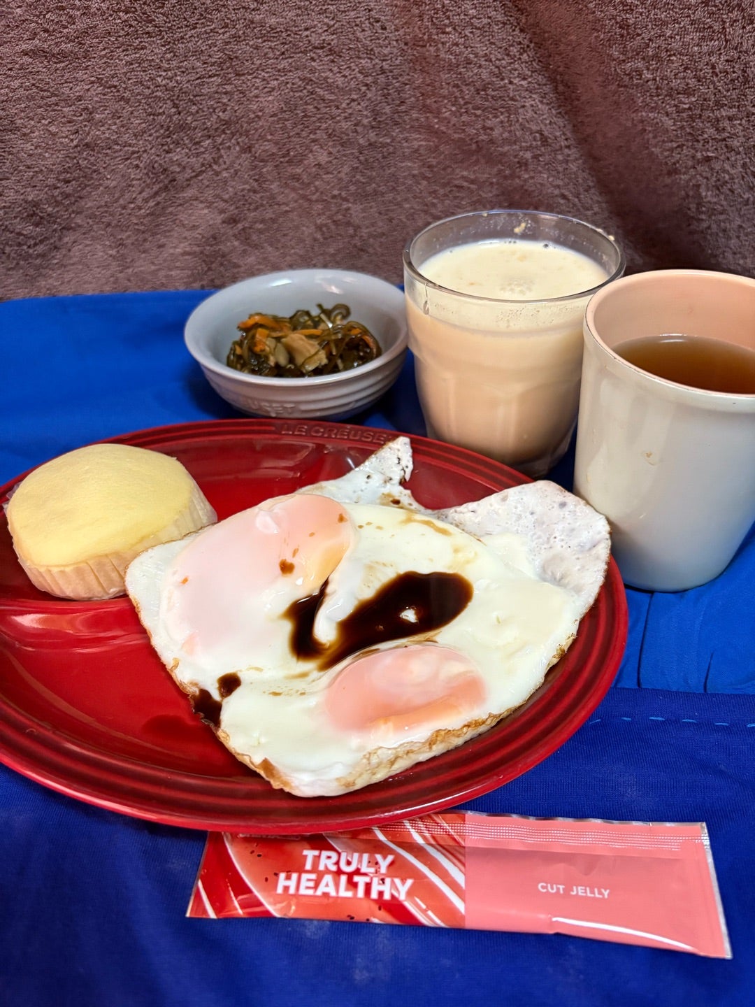 朝ごはん ダイエット食品「TRULY HEALTHY」!きなこ豆乳・目玉焼き!のみすけは、お腹いっぱいてんこ盛り--´༎ຶོρ༎ຶོ`。