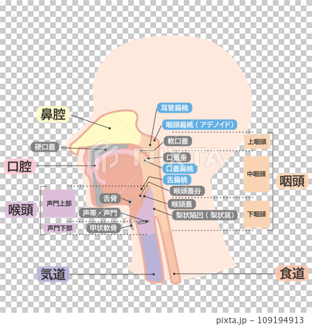 頭部の口から喉のシンプル名称つき解剖図イラスト2のイラスト素材109194913- PIXTA。