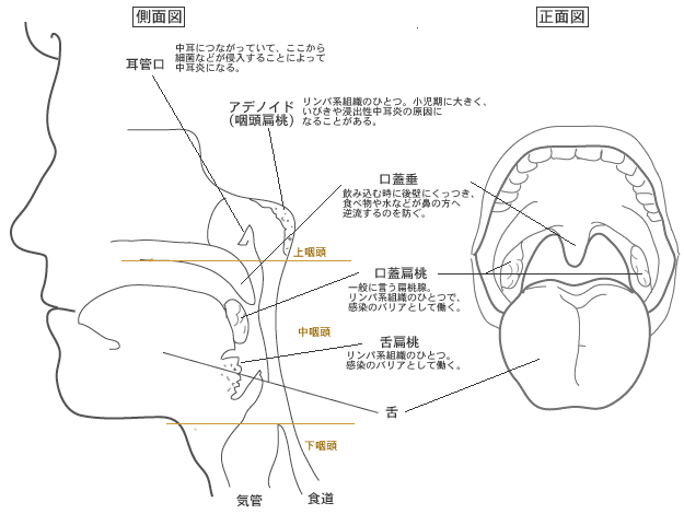 のどの構造と働き東京都世田谷区の耳鼻咽喉科 外科 内科「はたのクリニック」。