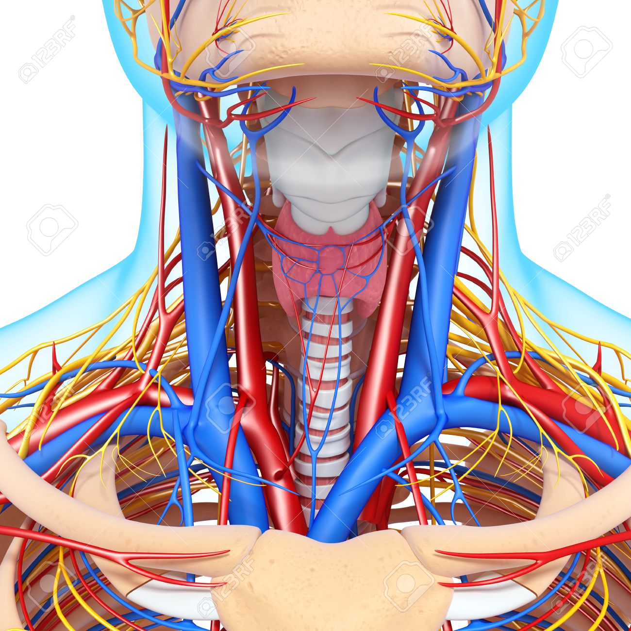 青い境界と隔離される喉の循環系の正面図の写真素材・画像素材 Image 14926588。