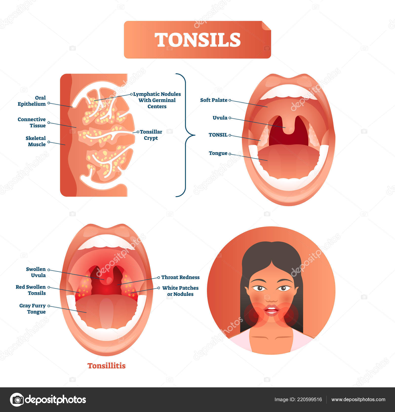 扁桃腺はベクトル イラストです。標識構造図扁桃炎. ストックベクター ©VectorMine 220599516。