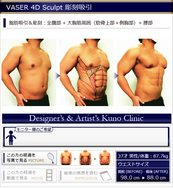 男性へのベイザー脂肪吸引術の3症例を紹介美容整形・美容外科のKunoクリニック 東京麻布院・大阪梅田院。