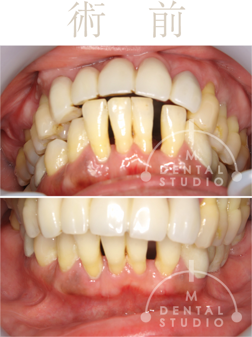 下の前歯の裏側の歯茎が下がった場合 - 歯茎の再生で歯周病から歯を守る。