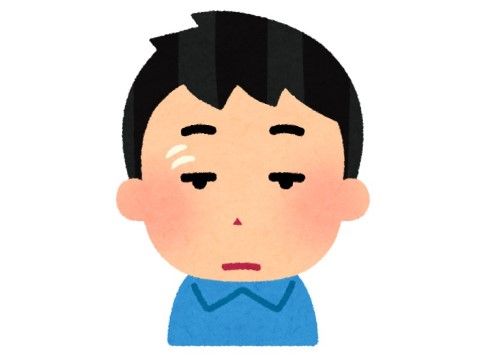 眠そうな丸顔の男の変顔イラスト・フリー素材なら「シンテリ」。