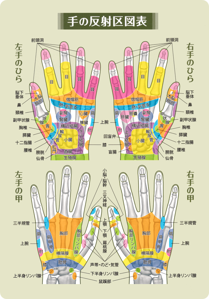 手のツボと反射区の違いは?全身の反射区と症状別「手のもみ方」大公開!ニフティニュース。
