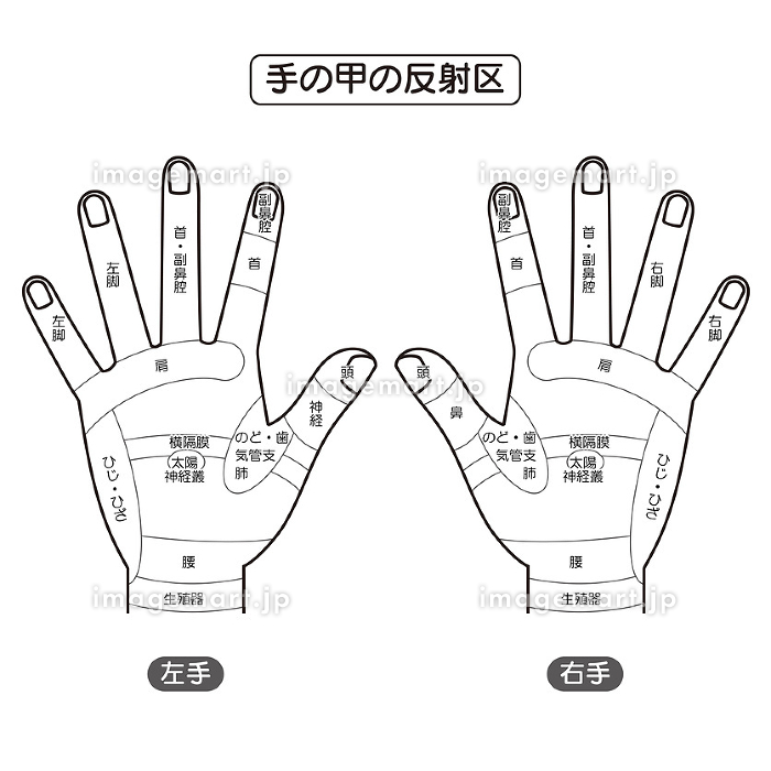 手の甲の反射区・手のつぼ 図解イラストのイラスト素材115913596- PIXTA。