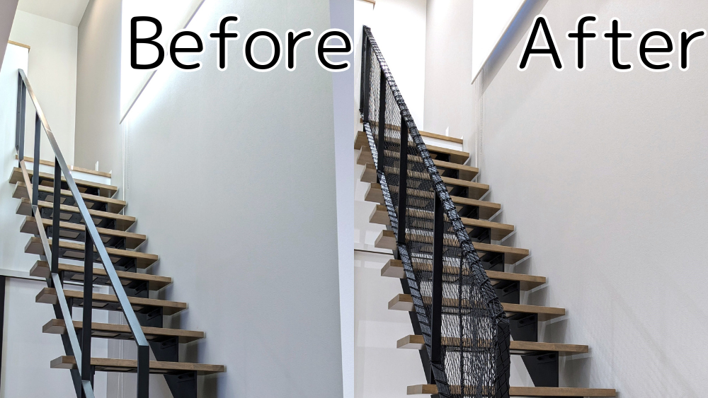 おしゃれ階段への転落防止ネットの取り付け方!オーダーして落下防止!つくるぱ。